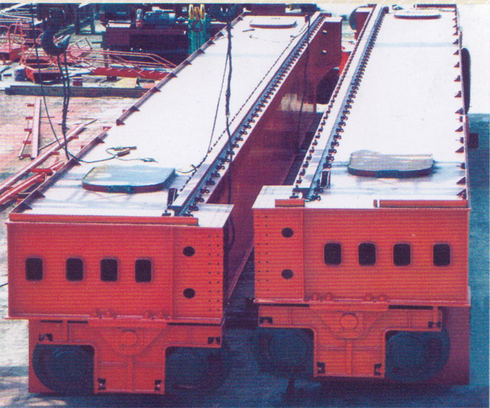 橋架在高架軌道上運(yùn)行的一種橋架型起重機(jī),又稱天車。橋式起重機(jī)的橋架沿鋪設(shè)在兩側(cè)高架上的軌道縱向運(yùn)行,起重小車沿鋪設(shè)在橋架上的軌道橫向運(yùn)行,構(gòu)成一矩形的工作范圍,就可以充分利用橋架下面的空間吊運(yùn)物料,不受地面設(shè)備的阻礙。這種起重機(jī)廣泛用在室內(nèi)外倉庫、廠房、碼頭和露天貯料場等處。